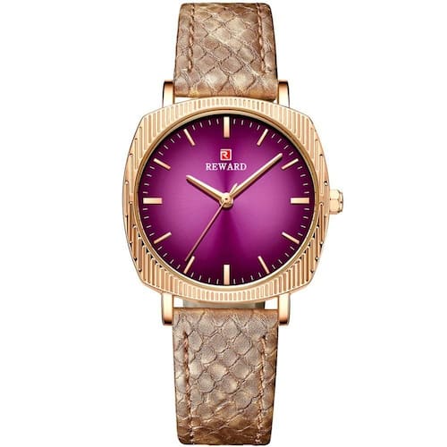 Relógio De Quartzo Feminino Com Estampa Cobra Animal Print Pulseira De Couro Roxo