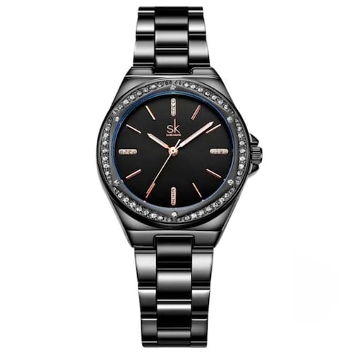 Os strass delicadamente incrustados ao redor do mostrador adicionam um brilho sutil, ideal para iluminar qualquer ocasião. Equipado com um preciso movimento de quartzo, ele garante que você sempre esteja pontual, sem abrir mão do charme.