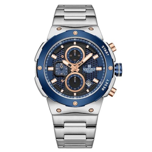 Relogio de quartzo Masculino com cronógrafo em aço inoxidável à prova dágua - Azul