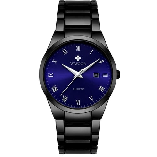 Relógio De Quartzo Masculino Com Data Automática Em Aço Inoxidavel Casual Preto Azul