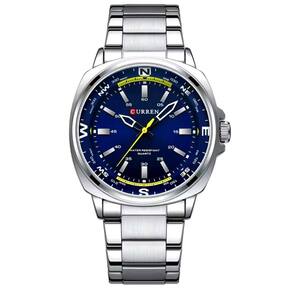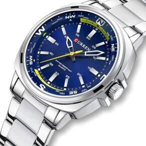 Relógio De Quartzo Masculino Display Analógico, Pulseira De Aço Inoxidável Impermeavel Prata Azul