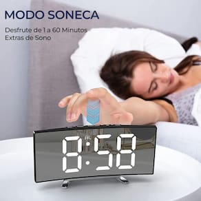 Relógio Despertado Mesa Cabeceira Digital Espelhado Curvado Cor: Branco
