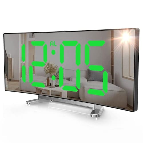 Relógio Despertado Mesa Cabeceira Digital Espelhado Curvado Cor: verde