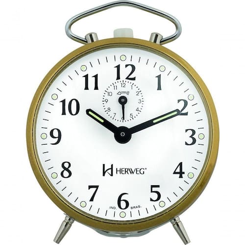 Relógio Despertador A Cordas Herweg 2210 Dourado Relógio Despertador A Cordas Herweg 2210 Dourado - Relógio Despertador A Cordas Herweg 2210 Despertador Mecânico - 2210 Estilo: Clássico Medidas: 12x9x6 cm Características Técnicas: Alarme com som campainha Disponível na linha promocional Mostrador Luminescente Iluminação noturna com Fosforescência Funcionamento Mecânico Cores Disponíveis: 207 Cromado Picotiado 208 Dourado Picotiado Informações sobre o produto Relógio Despertador Mecânico Base em metal cromado Visor de acrílico Ponteiro com massa luminosa Mostrador com massa luminosa Botões de regulagem na parte traseira e na parte superior do produto Detalhes cromados