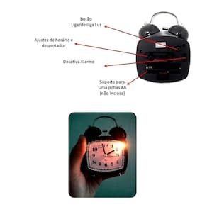 Relógio Despertador Analógico Retrô Rosa Pequeno Vintage Comece seus dias com charme, praticidade e pontualidade com o Relógio Despertador Analógico Retrô Rosa Pequeno Vintage. Criado para quem valoriza a simplicidade eficaz e deseja um toque de estilo na decoração, ele une o apelo nostálgico do design retrô com a confiabilidade de um despertador analógico. Ideal para substituir o uso do celular na hora de acordar, proporcionando um início de dia livre de distrações digitais e mais conectado ao momento. Seu formato retrô quadrado e a cor rosa suave tornam este relógio um destaque elegante em qualquer ambiente, seja no quarto, no escritório ou em espaços decorativos. Os números grandes e claros, combinados com ponteiros distintos, garantem leitura fácil da hora mesmo à distância, enquanto o acionamento e o ajuste de hora e alarme são totalmente intuitivos, sem menus ou funções complexas. Compacto e versátil, com dimensões aproximadas de 12,5 cm de altura x 8,5 cm de largura x 4,4 cm de espessura, o Relógio Despertador Analógico Retrô Rosa Pequeno Vintage pode ser facilmente posicionado em qualquer superfície sem ocupar muito espaço. Seu corpo é fabricado em materiais de qualidade, como ferro e ABS, aliados a componentes elétricos que garantem durabilidade e resistência no uso diário. O modelo ZB-2015 conta com iluminação LED embutida, permitindo visualizar as horas no escuro com praticidade. Funciona com apenas 1 pilha AA não inclusa , garantindo economia e liberdade de uso sem necessidade de fios. Seu mecanismo de alarme mecânico produz um som claro e eficaz para despertar, sem depender de tecnologias complexas. Especificações Técnicas: - Modelo: Relógio Despertador ZB-2015 - Material: Ferro, ABS e Componentes Elétricos - Dimensões aproximadas: 12,5 cm altura x 8,5 cm largura x 4,4 cm espessura - Formato: Retrô Quadrado - Alimentação: 1 pilha AA não inclusa - Com luz LED - Tipo de som: Despertador mecânico Itens Inclusos: - 01 Relógio Despertador Analógico Retrô Rosa Pequeno Vintage Este relógio é perfeito para quem busca um produto funcional, de fácil manuseio, com apelo decorativo e visual encantador. Sua estética vintage é atemporal e combina com diferentes estilos de decoração, do clássico ao moderno, sendo também uma excelente opção de presente para quem aprecia design e praticidade. de 3 meses contra defeitos de fabricação, assegurando ao comprador tranquilidade e confiança na aquisição. Em caso de necessidade, o atendimento é realizado de forma simples e ágil, reforçando nosso compromisso com a satisfação e segurança de cada cliente. Se você deseja acordar com mais estilo, funcionalidade e um toque de nostalgia, o Relógio Despertador Analógico Retrô Rosa Pequeno Vintage é a escolha certa para o seu dia a dia. Homologação Anatel: 005491708855