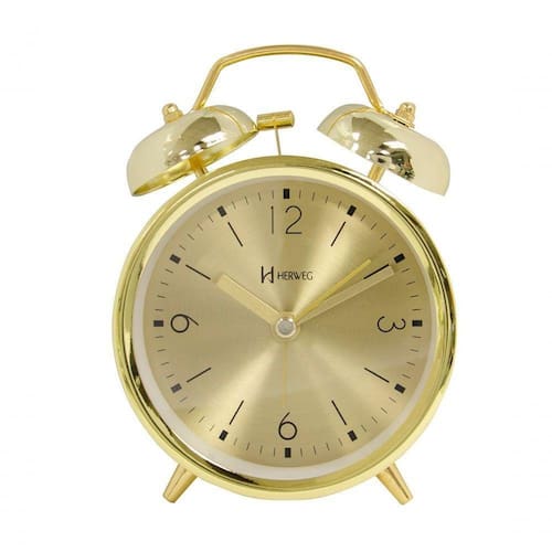 Relógio Despertador De Mesa Dourado Herweg 2720-029 Dourado Relógio Despertador De Mesa Dourado Herweg 2720-029 Dourado - Relógio Despertador De Mesa Dourado Herweg 2720-029 - Design moderno e muito bonito - Ideal para completar a decoração da sua casa - Produzido com materiais de qualidade. Marca: Herweg Modelo: Despertador Com Alarme Forte, tipo campainha. Cor: Dourado Material: Aço
