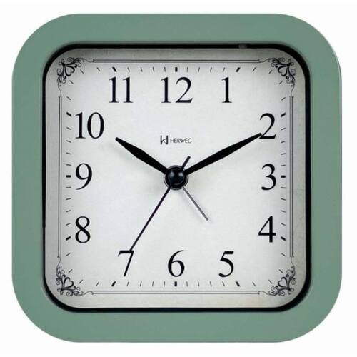 Relógio Despertador De Mesa Cabeceira Luz Silencioso 2653-346 Verde Sálvia Relógio Despertador Herweg Quartz 2653-346 Verde Sálvia Características Gerais Do Produto: Alimentação: 1 Pilha AA Não Inclusa Funcionalidade: Mecanismo Sweep ponteiro De Segundos Contínuo e Silencioso Iluminação Noturna, Soneca, Alarme Sonoro Material: Plástico Injetado Pintado Medidas: Altura 11,7cm X Largura 11,7 X P: 4,0 Cm Observações: Botões De Regulagem Na Parte Traseira Modelo Referência Do Produto: 2653-346 Atenção: Produto Pode Sofrer Variação De Tonalidade, Pintado A Mão Acompanha O Produto: 01 Relógio Despertador 0manual De Instruções : 12 Meses De De Fábrica Marca: Não Informado Ean: 7897280327636