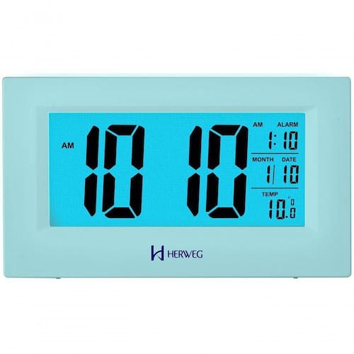 Relógio Despertador Digital Luz Noturna Preto Herweg 2972 Prata -