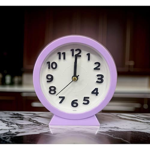 Relogio despertador, funcionando eletricamente a pilha Cor: roxo O relógio de mesa é de composiçao plastico abs , que é forte e durável. O relógio está disponível em 4 cores, todas adequadas para o seu quarto. O tamanho do relógio de mesa é 11124 cm Você pode comprar nosso relógio de mesa com total tranquilidade, porque você sabe que tem o melhor Relógio não marca, ação de varredura silenciosa, estável e silenciosa e ponteiro de segundos, pode garantir um bom sono e o melhor ambiente de trabalho. Marca: Tesla Store