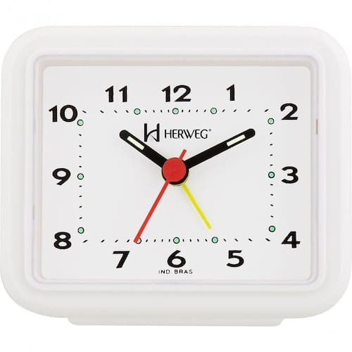 Relógio Despertador Quartz Alarme Forte Herweg Branco - Branco - Relógio Despertador Quartz Alarme Forte Herweg
