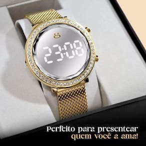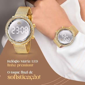 O relógio feminino digital da renomada marca Orizom Maria é fabricado com materiais de alta qualidade, banhado a ouro e possui um maquinário em aço inoxidável para garantir durabilidade e precisão. A pulseira ajustável de silicone proporciona conforto incomparável.