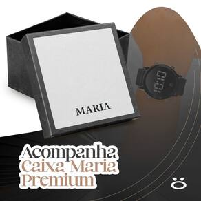 Relógio Digital Feminino Orizom Maria - Estilo e Funcionalidade em um Acessório Premium Apresentamos o Relógio Digital Feminino Orizom Maria, um acessório elegante e funcional que combina estilo com praticidade. Ideal para mulheres que valorizam qualidade e design sofisticado em seus acessórios diários.Características Principais:- Design Todo em Preto (Black Piano) para um toque de sofisticação- Maquinário em Aço Inoxidável com Pintura Eletrostática para durabilidade e precisão- Pulseira em Silicone Macia para conforto excepcional e ajustável para todos os tamanhos de pulso- Mostrador Digital de Fácil Compreensão com funções de data e hora práticas- Escolha de Números Brancos ou Vermelhos para personalizaçãoCaixa Ultra Premium Orizom Maria:Conjunto inclui uma caixa ultra premium da linha Orizom Maria, projetada para acomodar o relógio com segurança e elegância.Ideal para Presentear:O Relógio Digital Feminino Orizom Maria é a escolha perfeita para presentear a Maria especial em sua vida. Seja para aniversários, Dia das Mães, Dia dos Namorados, ou simplesmente para demonstrar amor e apreço, este conjunto combina estilo e funcionalidade.Adquira agora este elegante conjunto e surpreenda a Maria da sua vida com tanto estilo e sofisticação!