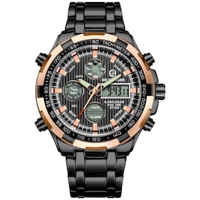 * Design esportivo moderno, pulseira de aço inoxidável e caixa de liga metálica.