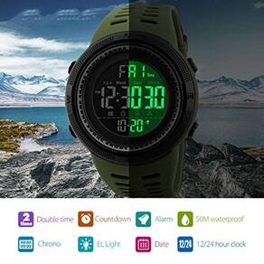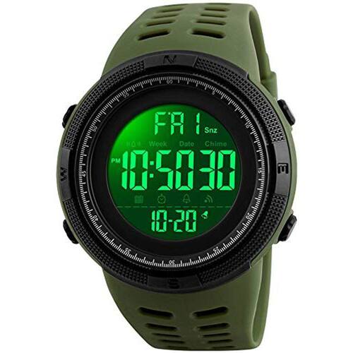 Relógio militar digital com multifunções: à prova d'água, resistente a choques, alarme, campainha de hora em hora, cronômetro, contagem regressiva, luz de fundo EL de dupla hora, calendário automático, horário de 12/24h, hora de exibição, minuto, segundo, mês, dia, semana