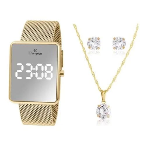 Relógio digital champion dourado espelhado ch40080b