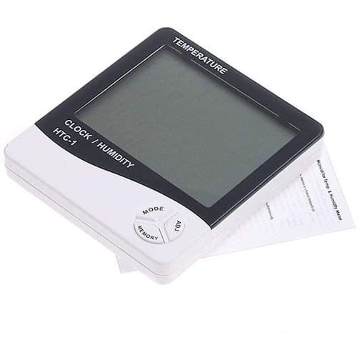 Relógio Digital Com Higrômetro E Termômetro Despertador Htc-1 Relógio Despertador Termômetro Higrômetro Digital Mostra a hora, temperatura e umidade ao mesmo tempo. Registra a temperatura/umidade máxima e mínima. - Mostra temperatura, umidade relativa do ar e hora simultaneamente - Memória da temperatura máxima e mínima - Mostra graus ºC ou ºF - 9. 9ºC 50ºC - Memória da umidade relativa do ar máxima e mínima 10%-99%RH - Relógio Digital 12/24h. - Alarme/Despertador. - Calendário com dia e mês. - Alimentado por 1 pilha aaa não inclusa . - Equipada com visor digital lcd. - Dimensões: 9. 5 x 10. 1 x 2. 1 cm. - Peso: 100g. Itens inclusos: 1- Relógio Instruções de uso: 1 - Ajuste de hora/data: Aperte o botão mode por 2 segundos até que a hora comece a piscar, ajuste com o botão adj ou Memory, em seguida aperte o botão mode e assim por diante. . . 2 - Ajuste de Alarme: Aperte o botão mode uma vez, em seguida faça o mesmo procedimento do ajuste de horas. Para ativar o alarme o alarme aperte o botão adj até aparecer o símbolo do sino. Caso queira o alarme de hora cheia, deixe marcado o símbolo Wifi.