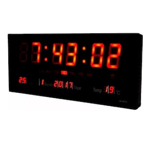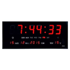 Relógio digital LED com calendário de parede, números muito grandes e muito visíveis, além de possuir sensor de temperatura, marcação de hora, data, dia, mês e ano, também mostra o dia da semana. Possui exibição de tempo, minutos e configurações de temperatura de 12/24 horas - Tipos de alarme configuráveis - Exibição automática de temperatura - Memória de tempo interna (o tempo é economizado mesmo se estiver desconectado) - LED vermelho - Dimensões: 36 cm x 16 cm x 3 cm - Fonte de alimentação: 220 V 50 Hz