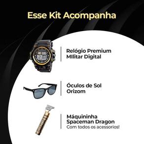 Relogio Digital Dourado + Oculos Escuro + Cortador De Cabelo Presente Robusto Casual Preto Kit Relógio Digital Masculino e Óculos de Sol Preto Orizom Spaceman