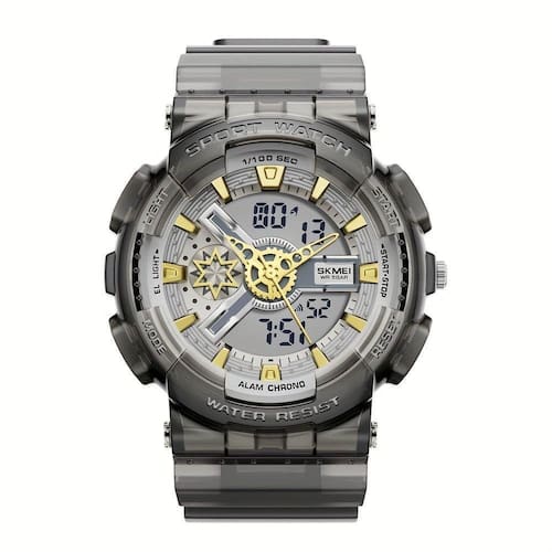 Especificações [Design Resistente] Este relógio apresenta uma estrutura em liga de zinco, garantindo que você esteja preparado para qualquer desafio, seja em terra ou na água. [Conforto Duradouro] A pulseira de TPU oferece um conforto inigualável, ideal para longas sessões de uso sem irritações. [Funcionalidade de Dupla Exibição] Com um display duplo, este relógio oferece clareza e praticidade, permitindo que você rastreie o tempo com precisão, mesmo em ambientes de baixa luminosidade. [Movimento Eletrônico] Equipado com movimento eletrônico confiável, você pode confiar em seu desempenho preciso em todas as suas aventuras. [Eficiência Energética] Alimentado por uma bateria de tipo botão, garante que você não precise se preocupar com recargas constantes, mantendo o foco no seu dia a dia movimentado