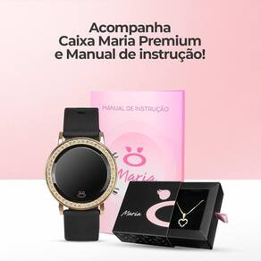 Relogio Digital Feminino Banhado Aço Inox + Colar Coração Social Moda Stras Casual Preto Kit Luxo Maria - Relógio Digital Orizom Maria Preto com Detalhes Dourados + Colar Banhado 18k com Pingente de Coração + Caixa Premium