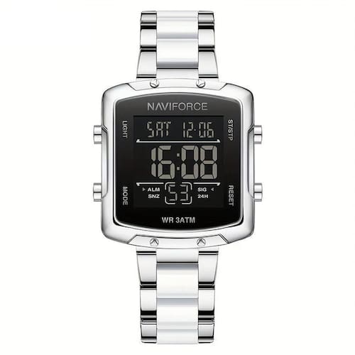 O Relógio combina simplicidade e estilo, oferecendo uma experiência de uso confortável graças à sua pulseira de aço inoxidável. Seu mostrador digital permite fácil leitura do tempo, enquanto o recurso luminoso assegura visibilidade em qualquer condição de luz. Este relógio é mais do que um acessório de moda; é uma declaração de elegância e confiança em cada pulso.