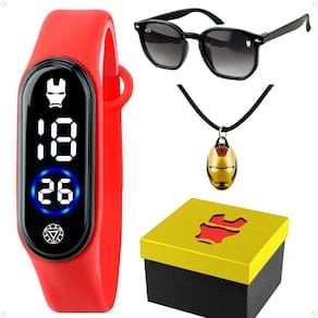 Relogio digital infantil iron man + oculos + colar + caixa kids vermelho silicone prova dagua menino Kit Relógio Digital Infantil Orizom Kids com Óculos de Sol, Colar e Caixa Premium - Temática Homem de Ferro - Relógio digital infantil em formato bracelete, pulseira ajustável em silicone, cor vermelha, temática do Homem de Ferro - Óculos de sol infantil com lentes UV, em acetato, temática do Homem de Ferro - Colar infantil preto ajustável, feito em materiais sintéticos, pingente em formato da logo do Homem de Ferro - Caixa ultra premium com temática do Homem de Ferro, ideal para armazenar os itens Este kit exclusivo da linha Orizom Kids é perfeito para crianças a partir de 5 anos, oferecendo estilo, durabilidade e a emocionante temática do Homem de Ferro. Dê ao seu pequeno fã do Homem de Ferro o presente perfeito com este kit completo, proporcionando proteção, estilo e diversão. Marca: Não Informado