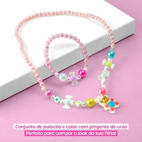 Relogio digital infantil led + colar + pulseira qualidade premium pink garota ajustavel prova dagua kit de Acessórios Infantis Orizom Kids - Relógio, Colar e Pulseira