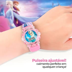Relógio Digital Infantil Princesa Led Rosa + Caixa Ultra Premium - Orizom Kids Relógio Digital Infantil Orizom Kids Frozen - Rosa - Pulseira de Silicone - Marca: Orizom - Modelo: Kids - Temática: Frozen - Mostrador: Digital com números grandes, facilitando a leitura para crianças - Pulseira: Feita em silicone ajustável, adequada para qualquer tamanho de pulso - Funções: Exibe hora de forma clara e precisa, com iluminação de LED - Características: Leve, resistente e confortável, ideal para o dia a dia das crianças
