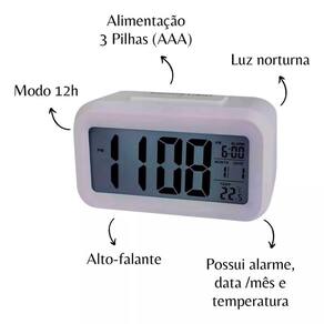 Relógio Digital Despertador De Mesa sensor de movimento - Acende o visor ao tocar...