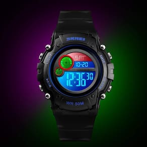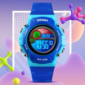 Relógios para meninos, relógio impermeável para esportes ao ar livre IWOCH, relógios de pulso digitais LED para meninos e meninas de 5 a 12 anos, ciano