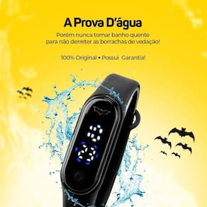 Relogio Digital Led Prova Dagua Infantil Preto + Copo Batman