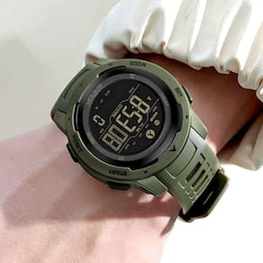 O relógio é resistente a água de 104,05 pés / 50m e pode suportar suor, chuva acidental ou respingos de água. Este relógio é resistente a riscos e proporciona uma sensação suave ao usá-lo, a pulseira é totalmente flexível e se mantém confortável em seu pulso, com largura de 22mm e comprimento de 26cm dá ao relógio uma aparência elegante.