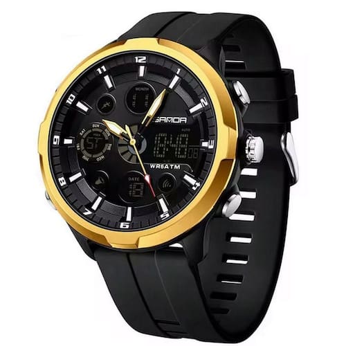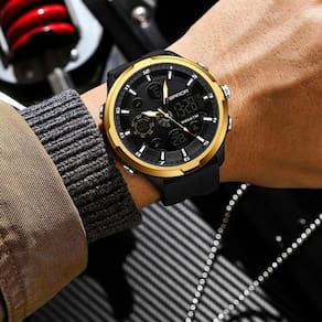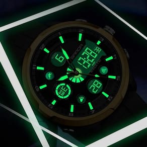 Projetado para o homem moderno que busca desempenho e estilo. Com movimento de quartzo de alta precisão, este relógio oferece resistência à água, tornando-o ideal para atividades ao ar livre e esportes. Possui um design robusto e elegante, com uma pulseira confortável e durável, além de recursos como cronômetro e iluminação noturna para garantir visibilidade em qualquer condição. Perfeito para quem valoriza funcionalidade e estética em um só acessório.