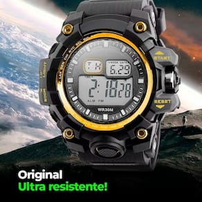 Relogio digital prova dagua ajustavel silicone corrida robusto esportivo grande Relógio digital masculino orizom spaceman preto com detalhe dourado - resistente à água