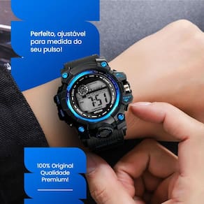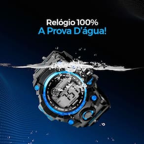 Relogio Digital Prova Dagua Masculino + Caixa + Oculos Sol Robusto Alarme Presente Grande Relógio digital masculino Orizom Spaceman - Grande, Redondo, À Prova d'Água