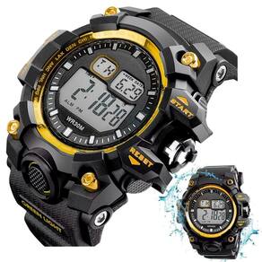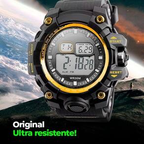 Relógio digital masculino orizom spaceman preto com detalhe dourado - resistente à água