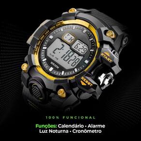 Relogio digital vermelho silicone prova dagua corrida grande Relógio digital masculino orizom spaceman preto com detalhe dourado - resistente à água