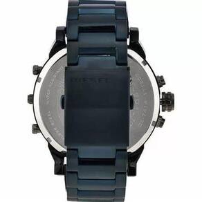 Dz7414 Mr Daddy : 12 meses Coleção: mr. Daddy Categoria: masculino Tamanho: extra oversize Funções : Analógico Cronógrafo cronômetro progressivo Calendário dia do mês 4 times Categorias : Bateria Coroa: simples Tampa posterior : rosqueado Resistência à água : 5m / 3bar Vidro : cristal mineral Mostrador preto Material da caixa : aço inoxidavel Material da pulseira : aço inoxidavel Marca: Não Informado