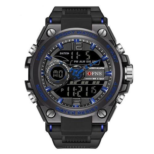 Detalhes: [Funcionalidade Ultra-Conveniente]: O Relógio Eletrônico à prova d'água OFNS vem com um visor duplo, permitindo fácil visibilidade em qualquer situação. Com luz noturna simples, você nunca ficará no escuro, literalmente e figurativamente. [Durabilidade Reforçada]: Feito com material TPU na correia e uma caixa de liga de zinco, este relógio está preparado para resistir às condições mais difíceis, seja na quadra esportiva ou durante uma aula prática. [Estilo Desportivo]: Seu design esportivo é um verdadeiro reflexo do espírito da Geração Z. A combinação perfeita de funcionalidade eletrônica com uma aparência robusta e moderna faz deste relógio um verdadeiro ícone de moda. [Resistência à Água]: Com um nível de resistência à água de 30 metros, você pode usá-lo em diversas atividades sem se preocupar com danos. Ideal para quem tem uma vida ativa e está sempre em movimento. [Precisão Eletrônica]: Equipado com um movimento digital eletrônico, o relógio garante uma precisão pontual, essencial para quem não pode perder nenhum segundo do dia.