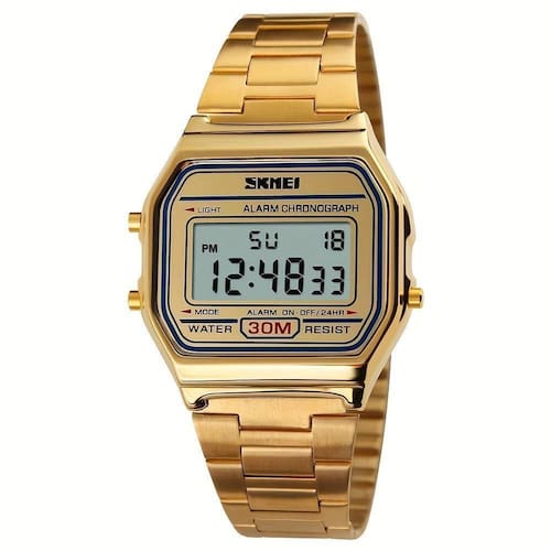 [Estilo e Sofisticação] Este relógio eletrônico não é apenas um acessório, mas uma extensão do seu estilo pessoal. Com um design compacto e acabamento dourado luxuoso, ele transforma qualquer look, tornando-se a combinação perfeita para ocasiões especiais ou uso diário.