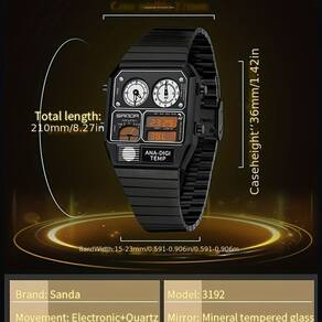 Descubra o design moderno e arrojado do Relógio Eletrônico de Moda SANDA, ideal para quem valoriza funcionalidade e estilo. Este relógio, com seu mostrador quadrado e pulseira de aço inoxidável, é a combinação perfeita de sofisticação e praticidade. Equipado com múltiplas funções como medições de temperatura e cronômetro, é a escolha ideal para um estilo de vida ativo e moderno. Feito para impressionar, o relógio SANDA é mais do que um acessório: é uma extensão de sua personalidade vibrante e tecnológica.
