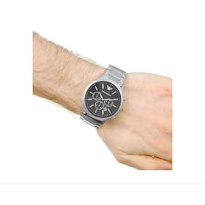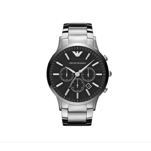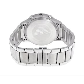 Caixa de aço inoxidável com uma pulseira de aço inoxidável. Fixa moldura de aço inoxidável. Mostrador preto com prata-tom mãos e marcadores de índice horas. O logotipo Emporio Armani na posição das 12 horas. Marcadores de minutos em torno da borda exterior. Tipo de discagem: Analógico. Data de exibição entre as posições 4 e 5 horas. Cronógrafo - três sub-mostradores exibindo: 60 segundos, 60 minutos e 24 horas. Movimento de quartzo. Raspe cristal mineral resistente. Puxe / coroa empurrão. Caso de volta sólida. Processo de diâmetro: 46 mm. Caso espessura de 12 mm. Largura pulseira: de 22 mm. Forma da Caixa rodada. Fecho de implantação. Resistente a 50 metros / 165 pés. Funções: cronógrafo, data, hora, minuto, segundo. Estilo do relógio casual. Dial Emporio Armani Sportivo Chronograph Black Men do Aço Assista AR2460 acompanha caixa Empório Armani com manual e Marca: Emporio.armani