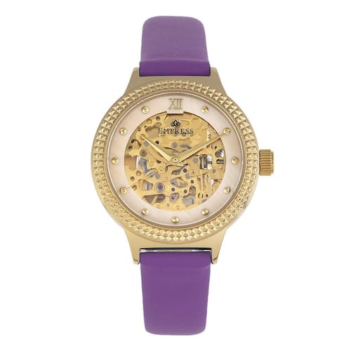 Relógio de pulseira de couro Empress Alice Automatic MOP Skeleton Dial, roxo, tamanho único, EMPEM3205