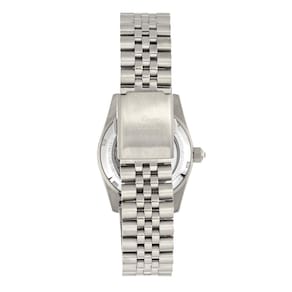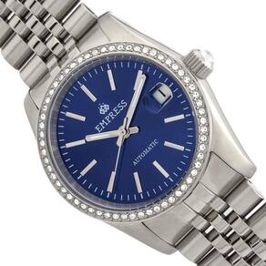 Mostrador azul aprimorado por ponteiros prateados. Caixa de aço inoxidável prateado com uma pulseira de aço inoxidável prateada. Movimento automático. Resistência à água até 50 metros. Bisel fixo. Cristal mineral resistente a arranhões. Parte traseira transparente. Fecho de botão de pressão. Tamanho da caixa: 37 mm x 13 mm. Pulseira de 20 mm x de comprimento. Relógio Empress EMPEM1504 Constance.