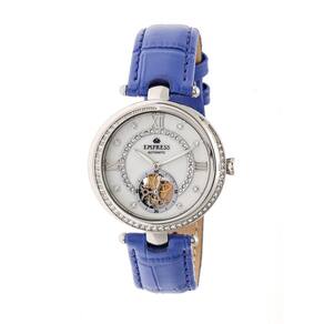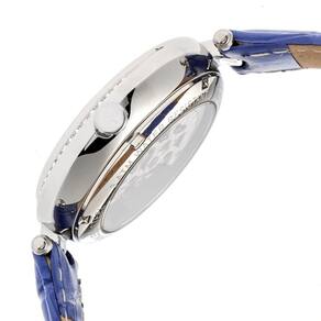 Mostrador prateado (conjunto de cristal) aprimorado por ponteiros luminosos prateados. Caixa de aço inoxidável prateado com uma pulseira de couro azul (em relevo croco). Movimento automático. Resistência à água até 30 metros. Bisel fixo. Cristal mineral revestido de safira. Parte traseira transparente. Fecho de pino. Coroa de puxar/empurrar. Tamanho da caixa: 39 mm x 11 mm. Pulseira de 16 mm x de comprimento. Relógio Empress EM2103 Stella.