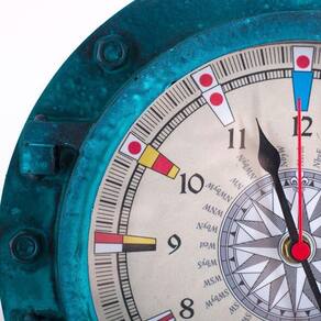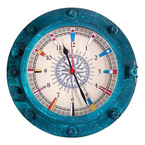 Relógio Escotilha Decorativa - Náutica - CIS único - Características Gerais do Produto: Acabamento: Produzido artesanalmente; Pintado nos mínimos detalhes à mão Alimentação: 01 pilha AA não inclusa Material: Resina; Protetor frontal em vidro Medidas: 27,5cm de diâmetro x 6,5cm de altura Observações: Inclui suporte para pendurar Referência do produto: 720 : 12 Meses de de Fábrica Marca: Não Informado
