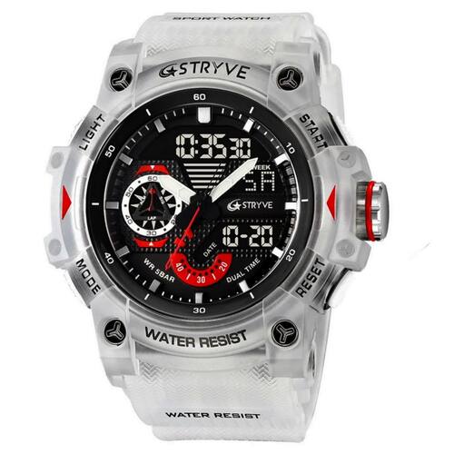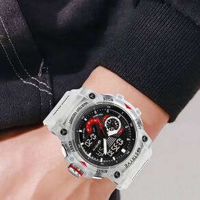 [Exibição Dual] O mostrador combina o analógico e digital, oferecendo versatilidade e praticidade, ideal para a vida moderna.[Material e Durabilidade] Com um estojo de liga e visor em vidro, é resistente e duradouro, enquanto a pulseira de silicone garante conforto durante o uso.[Funcionalidades Extras] Inclui funções como cronômetro, alarme, e calendário completo para manter você sempre pontual e organizado.[Ainda mais Estilo] Um diâmetro destacado de 50 mm se encaixa perfeitamente como peça central no seu pulso, prontíssimo para se destacar na multidão.[Resistência à Água] Com resistência de 5 bar, é perfeito para aventuras ao ar livre, desde uma corrida sob chuviscos até um mergulho superficial.