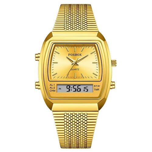 Cada detalhe foi cuidadosamente pensado para atender às suas necessidades. Equipado com uma tela de LED que oferece clareza incomparável, mesmo em condições de baixa luz, e um revestimento à prova d'água que garante proteção até 3 Bar de profundidade. A pulseira de aço inoxidável não só proporciona um ajuste confortável, mas também exala uma durabilidade excepcional. Este relógio de moda não é apenas um acessório, mas sim, um símbolo de sofisticação para o homem atual.