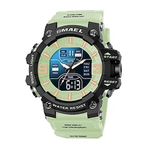 Relógio masculino analógico digital esportivo militar à prova d'água, relógio militar, cronógrafo externo, cronômetro, relógio de trabalho casual para homens com rosto grande, relógio de pulso com alarme de tempo duplo (verde)