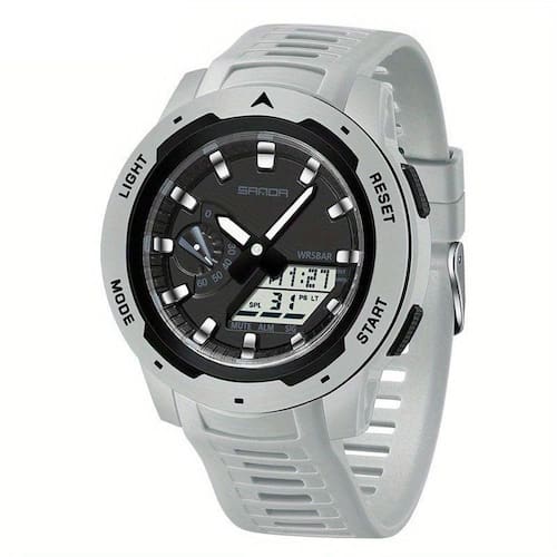 [Durabilidade exemplar]: Fabricado com materiais de alta qualidade como resina sintética e TPU, o relógio esportivo SANDA não é apenas elegante, mas também resistente ao uso intenso, acompanhando seu ritmo diário por muitos anos.[Resistente à água]: Com resistência à água de 5 ATM, você pode desfrutar de suas atividades em ambientes úmidos sem preocupações, levando o relógio para aventuras ao ar livre e esportes aquáticos leves.